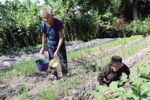 万宁百岁老人正在浇菜
