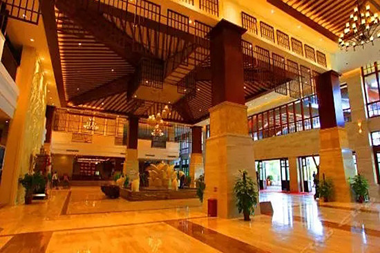 6公里行车10多分钟车程就到了我们的度假基地——五星东方西海岸福安候鸟旅居基地。时尚不失风情的一栋建筑物掩映在挺拔的椰子林下,显得静怡、豁达,欧式大堂、富丽堂皇彰显皇家气派,热情的前台接待细心地给我细说酒店的各项服务功能,宾至如归,身心温暖。